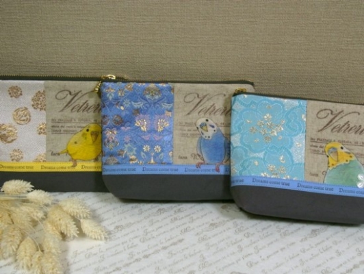 イラスト工房Emi デニムのがま口ポーチ&着物ポーチ