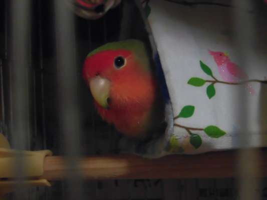 、小桜はおしゃべりは苦手です。三角ベットからちょこんと顔を出してるが可愛いです。