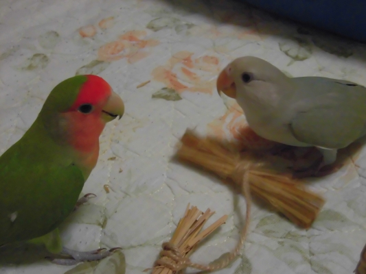 以前セキセイ2羽を同居させていた時はうちも、ちっとも仲良くなくハラハラさせられましたが、ケンカにならなければ と生ぬるい目で見守っていました。