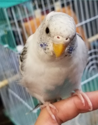 特徴:名前を呼んでも反応しません。指を近づけると手乗りインコですので乗ってきます。