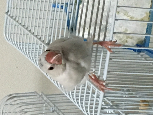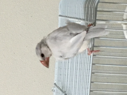特徴:まだヒナなので全体的に灰色です。くちばしと足はピンク色です。換羽中でまだ綿毛のようなフワフワした羽が生えています。
