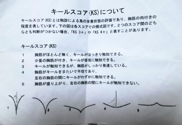 鳥の健康診断の時 キールスコアについて という説明書を もらった事が 有ります。