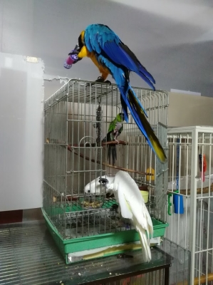 コンゴウにしては狭いケージだなと思ってたら、放鳥前のケージはめっちゃ広かったですね!
