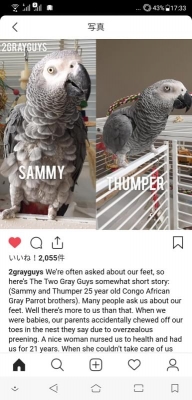 我が家のヨウム2羽。