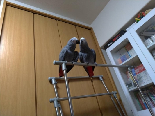 一応、先住鳥のヨウムを優先としますが、なかなか難しいものですね。