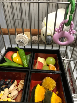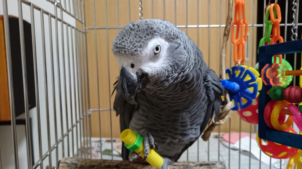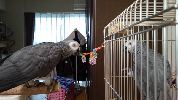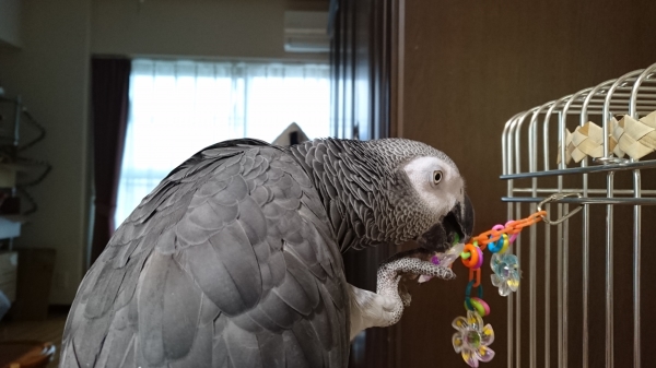 今回、羽いじりから気をそらすため、思いきってプラスチックのおもちゃをあげてみたところ、誤飲しないだろうと思う位に成長していました。