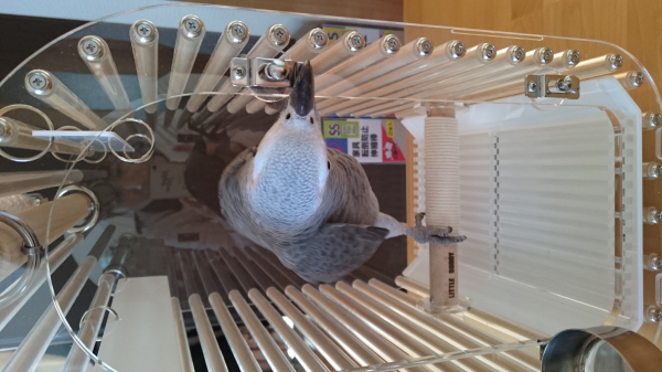 十分なれてから様子をみて、ケージの中に吊るしました。