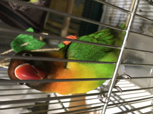 色:頭が茶色、首が胸にかけてオレンジ黄色、他ミドリ