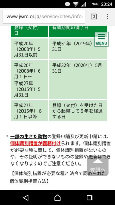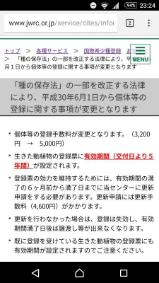 今年の6/1に、サイテス1類の登録が更新制になります。