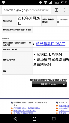 一応、パブリックコメントを環境省で募集しています。