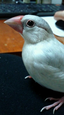 特徴:ひな換羽中 3ヶ月 ぐぜりあり しっぽが長い 飛ぶのが速い 指が近づくとクルルという