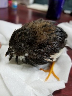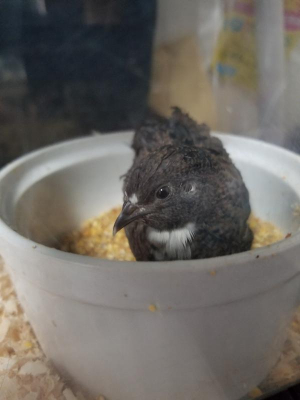 その他情報:雨の日に溝に流れていました。すぐに保温し緊急で鶏の餌を少しあげていたら元気になり、今はうずら用フードとインコのペレット混ぜたもの、ミルワームを少しを食べており