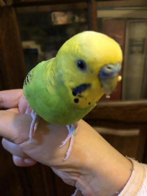 日時:2018/9/9(日) 17時頃 場所:東京都世田谷区 鳥の種類:セキセイインコ 名前:まい 色:身体が黄緑色、頭・尾羽・お腹の一部が黄色。 特徴:手乗りで、お喋りもよくします、 投稿区分(本人or代理):本人