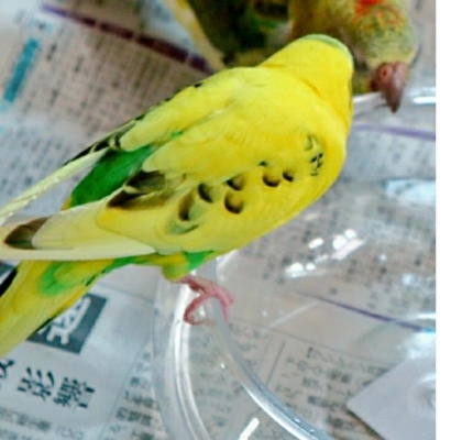 日時:2018/9/8 場所:静岡市清水区三保 鳥の種類:セキセイインコ 名前:百目鬼『どうめき』 色:黄色 特徴:左目の上に膨らみがあります。 お腹下、お尻の所にしか緑色はありません。 発情期中なのでなんでも反応します。 投稿区分(本人or代理):本人