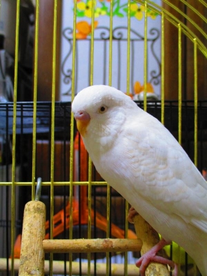 特徴:Cooちゃんは、アルビノですが薄く茶色い模様(ファローが入ってます) 以前怪我をした影響か、飛ぶときはひらひらと飛びます、 あまり、飛ぶのは好きではないようで、長距離は飛びません。 喝舌が悪いですが、『いいこいいこ』などいろいろしゃべります。