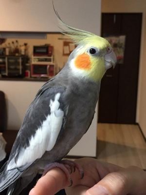 色:顔とトサカが黄色で身体はほぼグレーに白い羽根あり。頬はオレンジ
