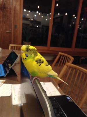 特徴:顔にさざなみ模様、後頭部に少し抜けあり。おしゃべりしませんが人懐っこく肩に乗りたがります。女の子だと思います。