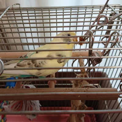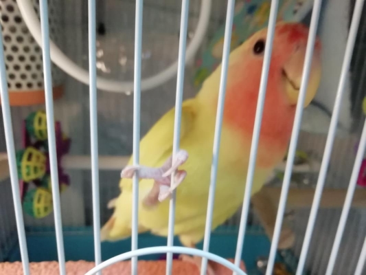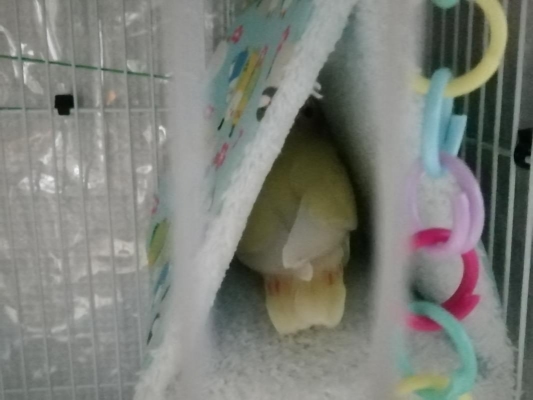 ぱぴこは、とてもこわごりで、最初とても不安でしたが、昨夜、自力でケージから出ようとして、わたしの指につかまりました!