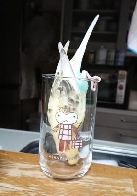 コップに逆さまのつぶちゃんめっちゃかわいいです???❣️器用ですねぇ~✨