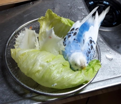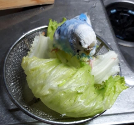 まめちゃんのレタス風呂はパピと一緒ですね?サラダを作る時のレタスやキャベツのちょっと捨てたらもったいないかなあ?くらいの外側の葉っぱが水浴びにちょうど良いです?カラー無しも定着してるみたいですね✨??