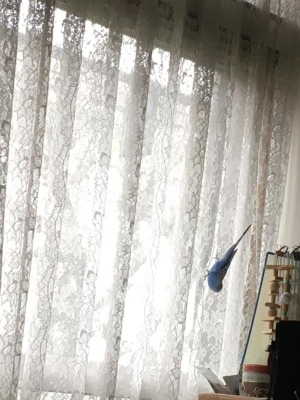 しえるちゃんのカーテン登り可愛いですね?ちゃんと爪が引っかからないように考えて登っているのですね?さすがスポーツ万能なしえるちゃん✨