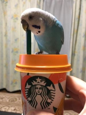 ピーコ君は相変わらずイケメン?世界一スタバが似合うインコちゃんだなあ??✨⤴︎
