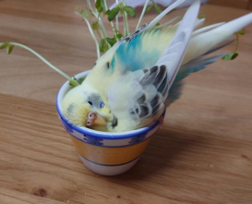 知り合いのセキセイインコちゃんは一羽飼いですがつぶのカゴの一周り程大型の"豪邸"にお住まいです(笑)?