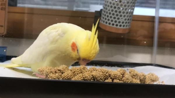 (他のオカメが餌を啄ばんでいる動画も有効だと思います。うちは見てました)