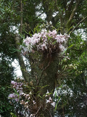 庭木に付けたセッコク(着生ラン)が咲き始めました