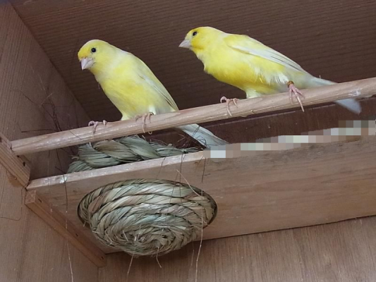 十姉妹ですが昨日、目隠しを外して巣を確認したら卵が2つありました。