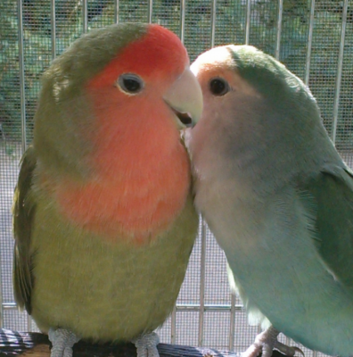 先住のコザクラ一家の仲間に入りたくて、クリッピングされて生え揃わない羽で皆の後を一生懸命追い掛けて