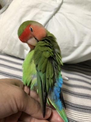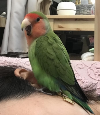 特徴:他人の手には止まりませんが、頭や背中にとまり、付いて行ったりする事があります。寒がりで怖がりです。