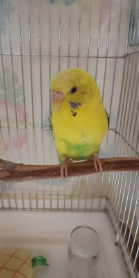夕方、ケージの隙間に羽を挟んで