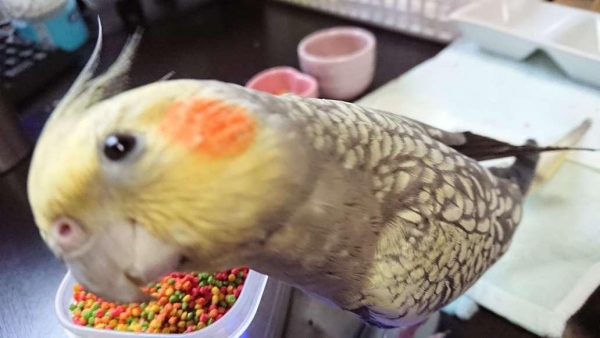 雛の時に食べてたPYFが好きなようだったので、少しでも食べる量が増えればと思い小さい餌入れにいれてあげました。