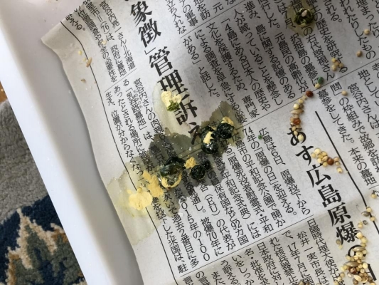 赤茶のフンはなく、深緑のような黒っぽいフンでした。