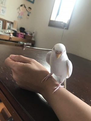 特徴:家族に慣れています。肩に乗るのが好きであまり鳴きません。右の羽の方が少し長いです。
