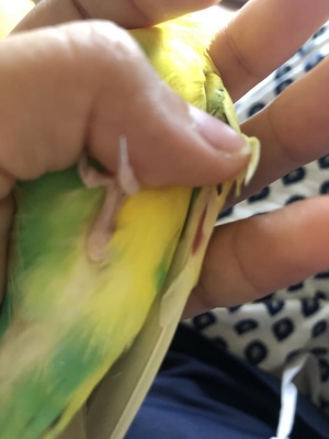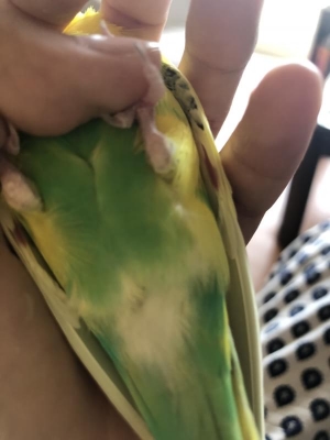 セキセイインコの羽根の付け根に血が溜まっている