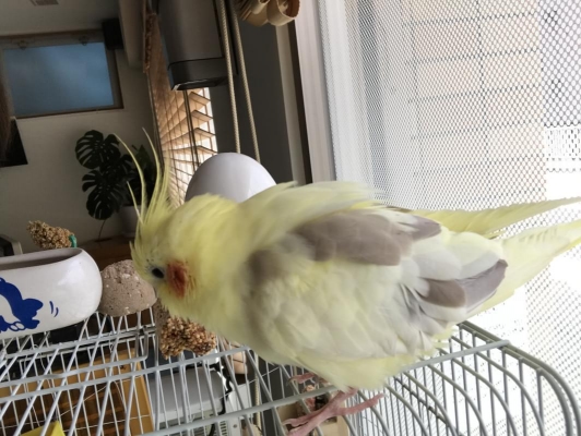 色:黄色、背中に一部シナモングレーの羽が生えています。