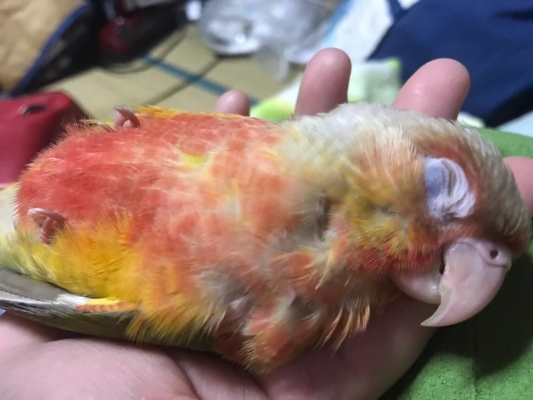 一人餌が食べれるまでお預かりしていただいていた(現在)生後48日程のウロコインコちゃんを10月3日にお迎えしたのですが…