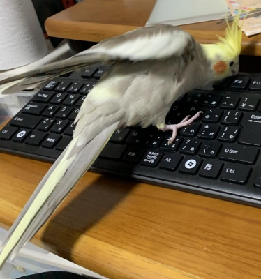 特徴:喋りません、歌いません。足輪なし。人懐っこく、初対面でも割と頭や肩に乗ってきます。メガネを外して見せるとつるのところをかじりにきます。両羽を大きく広げたまま練り歩くことがあります。