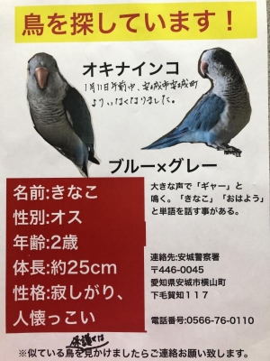 その他情報:クチバシの上と首の後ろの毛が少しバラついています。