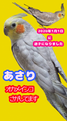 くちばしの真ん中辺りに皮がめくれそうな感じの線があります。お迎え時にクリッピングされており、迷子時には数本伸びた状態でした。肩に、少しだけ黄色があります。点々って言うぐらい小さいですが…。