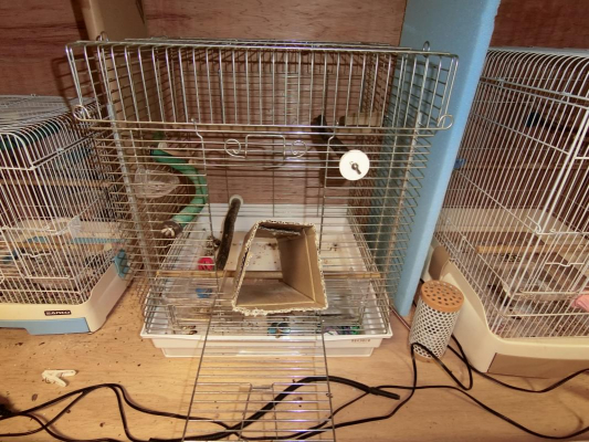 (暗闇にしてタオルでそっと掴んでケージに戻す、という訓練中です。)