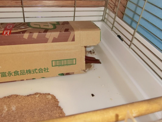 うちのこがよく寝るようになったのは、たぶん・・・ダンボールをかじるのが好きだった頃、ためしにダンボウルでトンネルを作って、ケージに入れてみました。(見慣れさせてない)これは寝床用ではなく、かじったり、くぐったり、してくれたらいいなー程度でしたが、気に入ってくれて、約3年同じダンボウルトンネルで熟睡してます。
