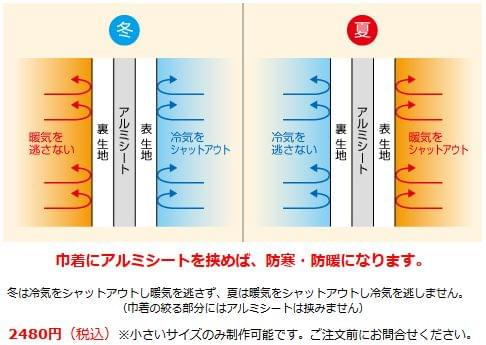 巾着にアルミシートを挟めば、防寒・防暖になります。