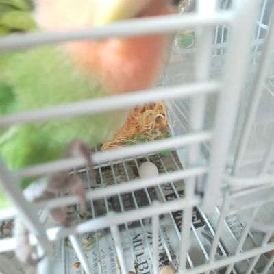 今まで20年程前にさかのぼりますが、セキセイインコを数十羽飼っていたので鳥を飼うのには慣れていましたが、今回のコザクラインコが1羽飼いであるのに卵を1つ産んでいました