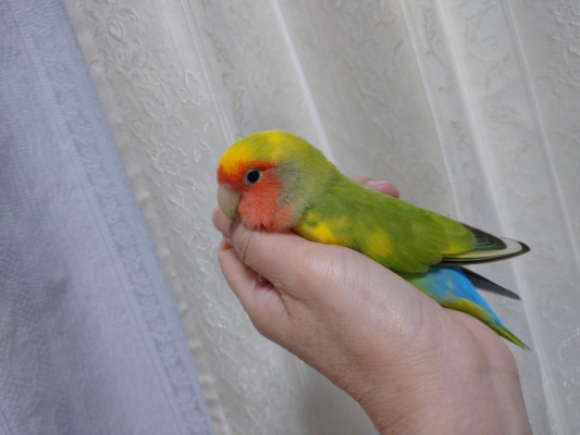 パコはまだ指には止まってくれませんが、手のひらには乗ってくれます。