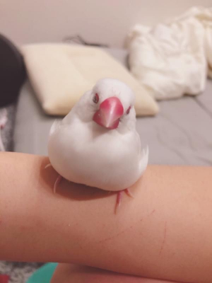 特徴:羽は全て白色。爪は数日前に切ったばかり。