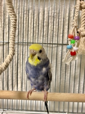 人馴れしておらず、手を見せると怖がりますが、鳥は好きなようで、先住のオカメインコに会わせるととても喜びます。