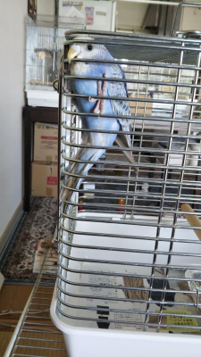 夕方6時頃、窓ガラスに何度も体当たりする小鳥がいて何事かと思いカーテンを開けると綺麗な水色のセキセイインコがいました。まだ小さいです。江坂交番すぐ届け出ました。飼い主様が見つかるまでうちで保護することになりました。ご飯を沢山食べとても元気です。